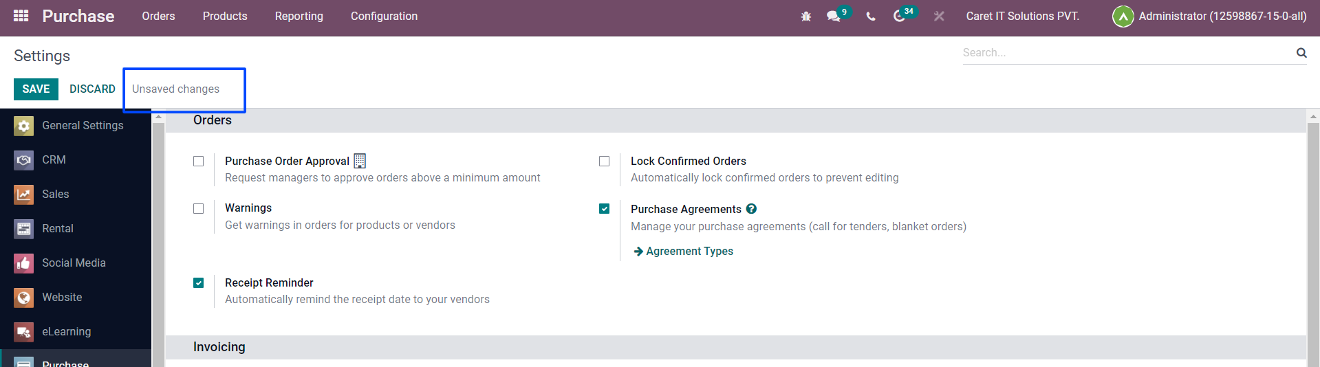 When we enable or disable any option from Configuration ➤ Settings before saving, it will display unsaved changes.