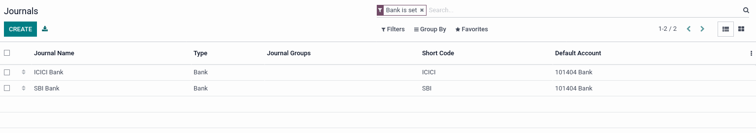 First, create a Journals for Bank.