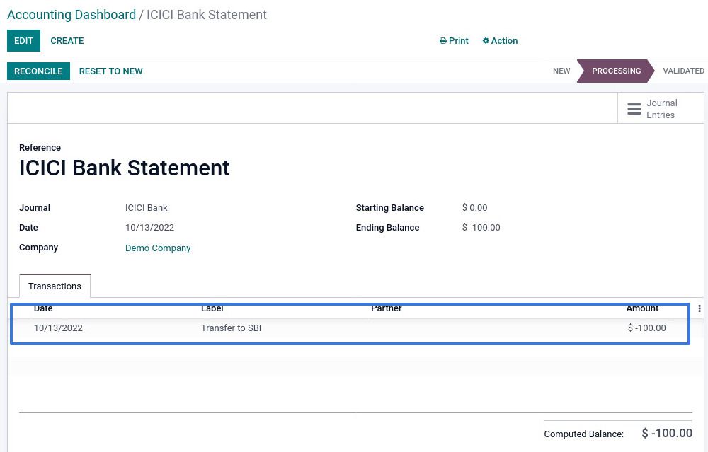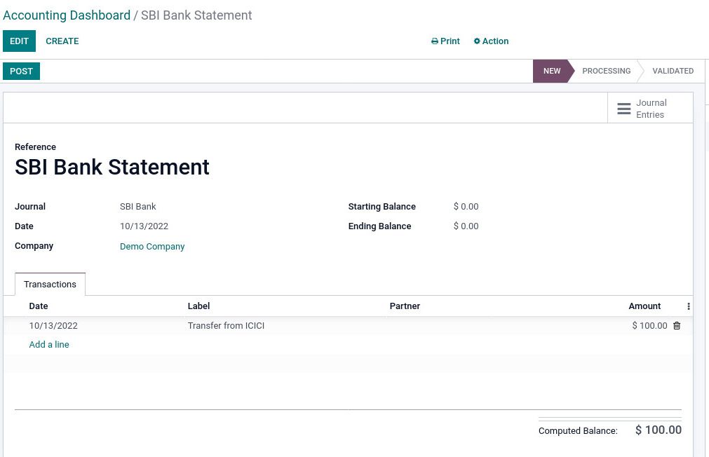 Now let's create/import a Bank statement for SBI Bank.