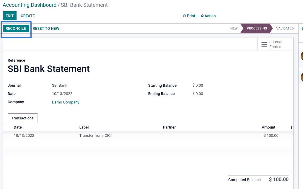 Now click on the 'Reconcile' button to reconcile the entry.
