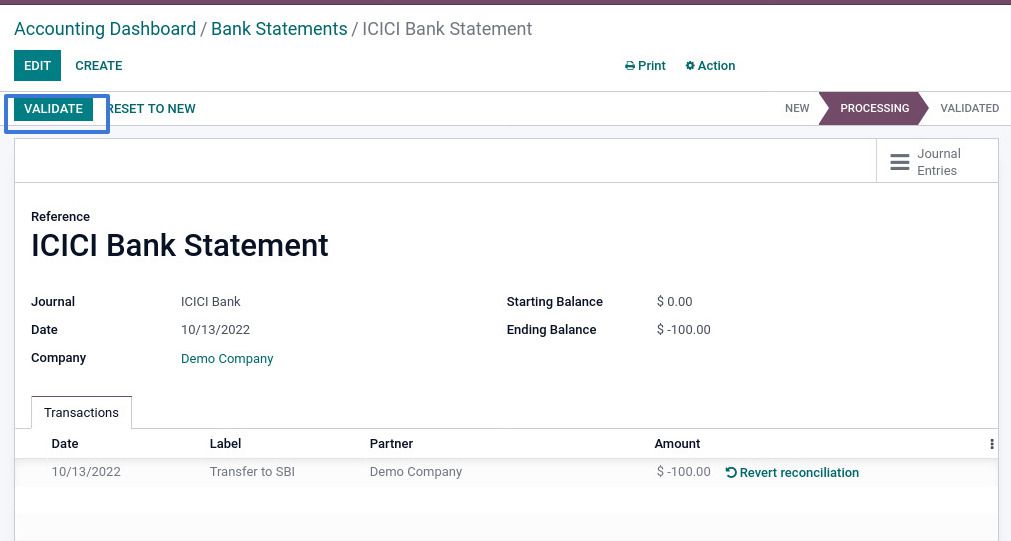 After Reconciliation, you can check the SBI details on the Accounting dashboard.
