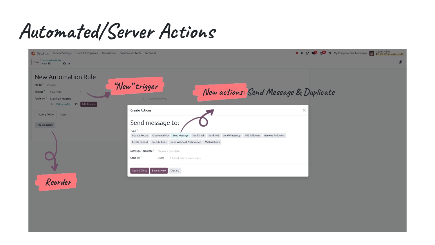 • New automation actions: Send Message, Duplicate