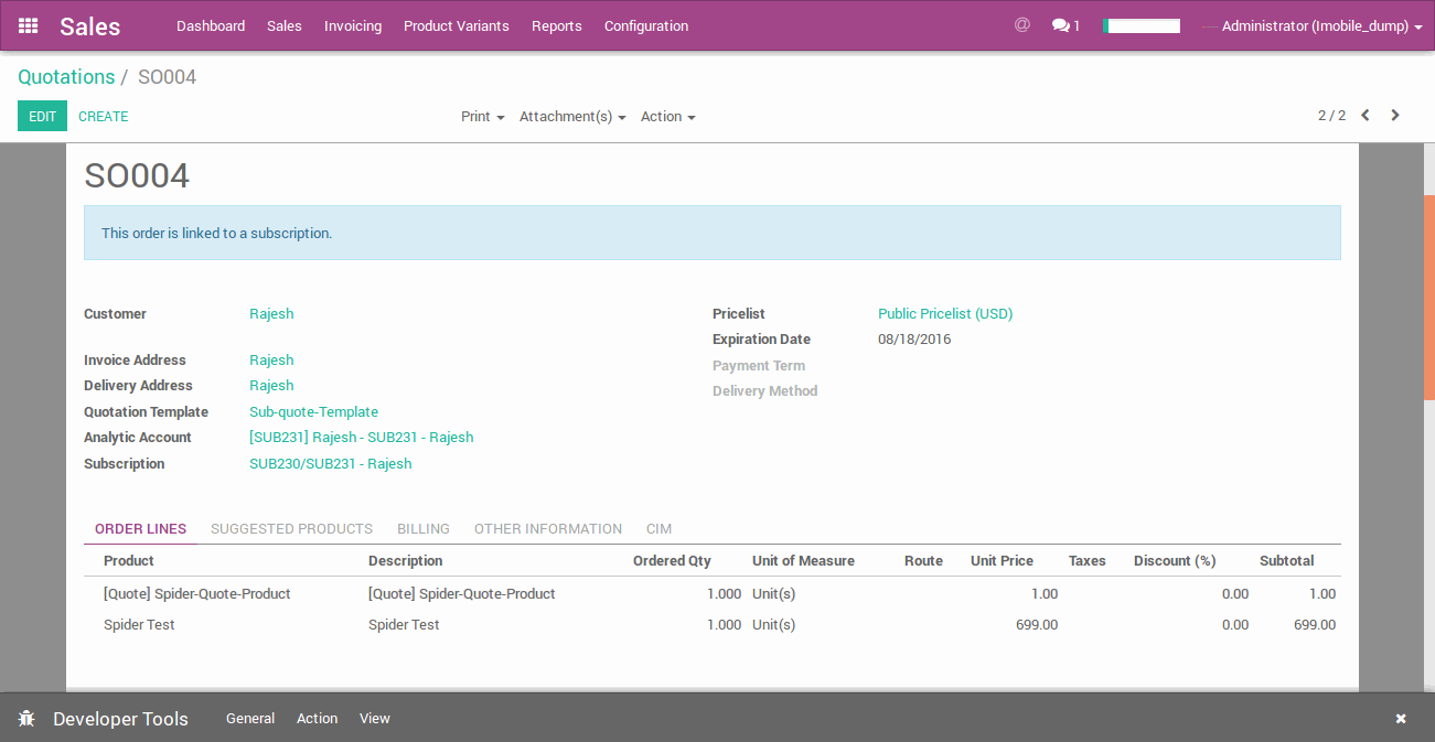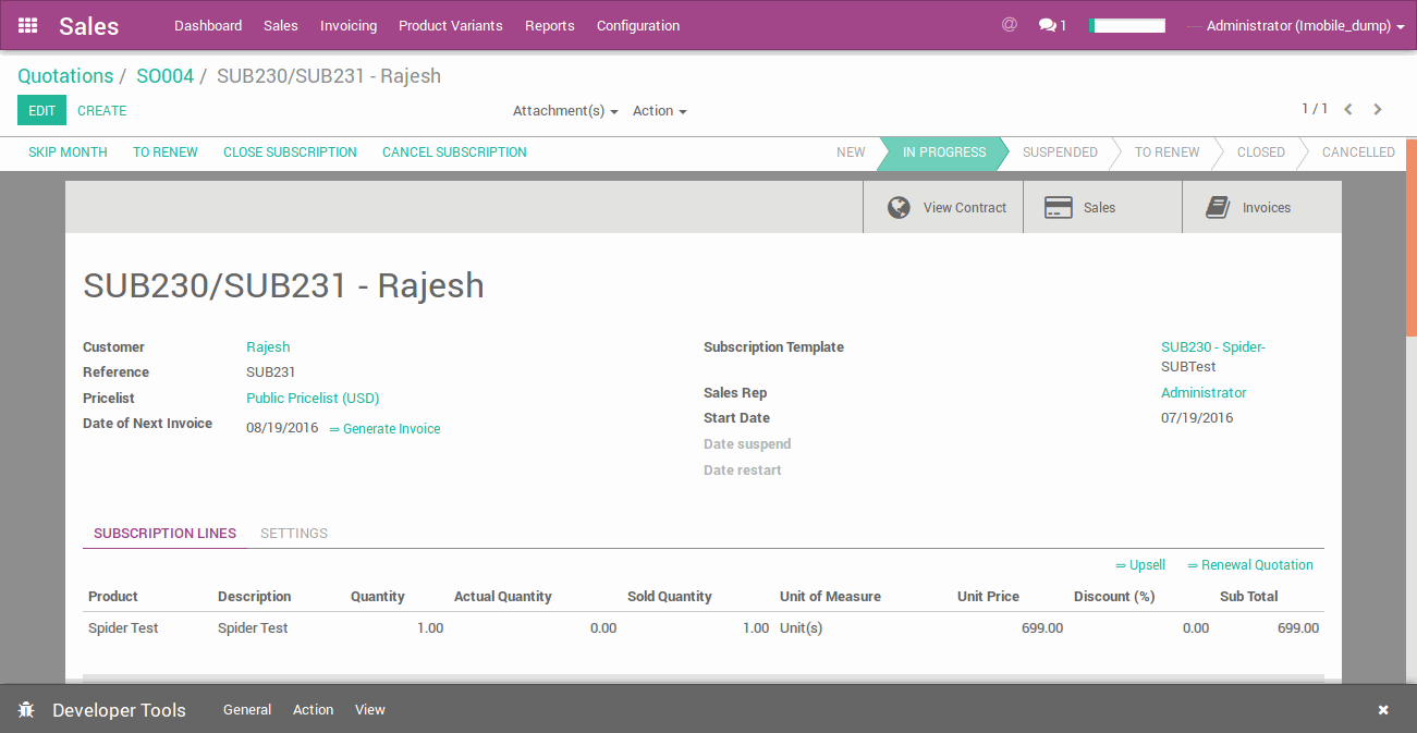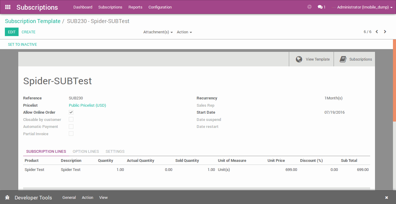 - Now after monthly subscription is over. And user want to subscribe other service. user can update service from Odoo subscription and it will change product in Allclients account. Suppose user change the service to Spider ProMortgage from Spider Pro-Real Estate.