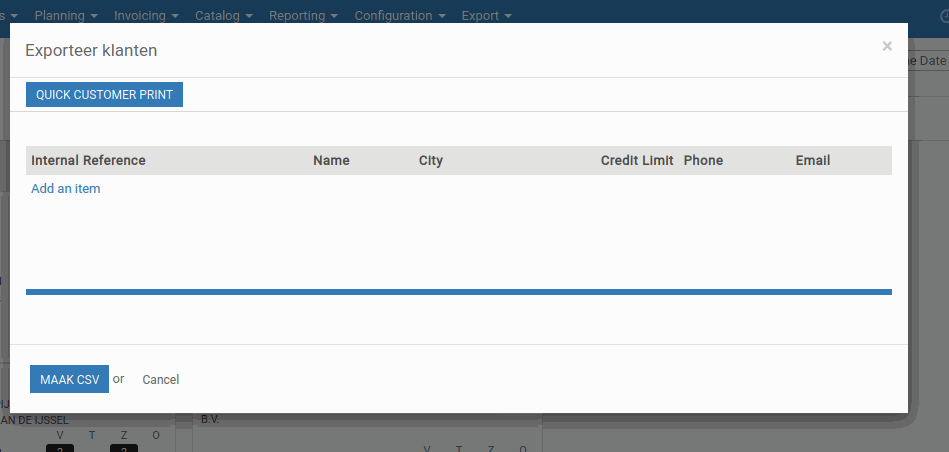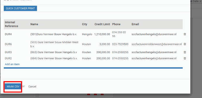 After selecting the customer it will create a CSV file to export.
