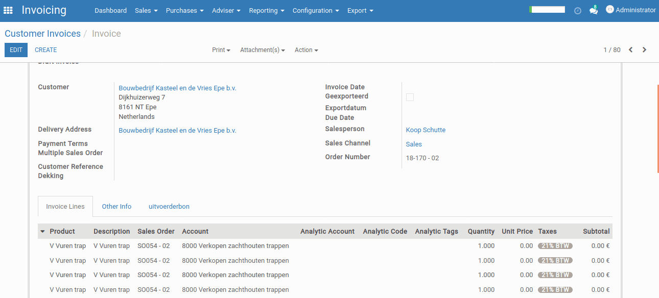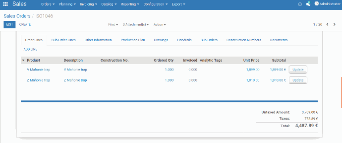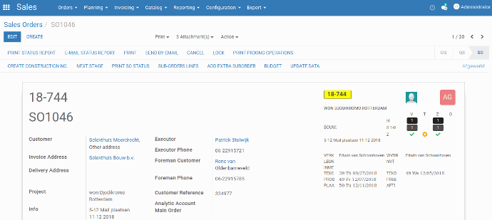 User can add Documents, Construction numbers, Document type, etc. within the sales order.