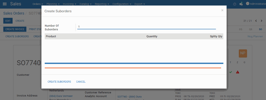 Split quantity and create a suborder.